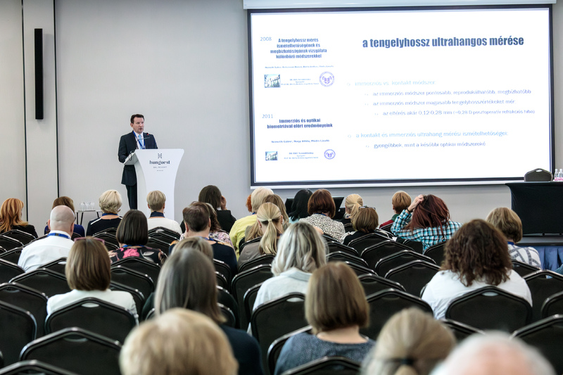 Az felkért előadók között péntek délután szerepelt Kovács György optometrista, optikus mester, a Zala Optika Csoport ügyvezetője és a Magyar Optikus Ipartestület Optometrista Szekciójának tagja is. Előadása során különös részletességgel, izgalmasan mutatta be a hallgatóságnak az optometrista szakma eredetét, identitását és jelenét „Az optometrista feladatai és kompetenciái napjainkban” című prezentációjában. Kovács György előadását a hallgatóság érdeklődő figyelemmel kísérte, hiszen olyan kérdéseket vetett fel, amelyek a szemészeti ellátás jelenét és jövőjét alapjaiban érintik. Az optometrista képzés hazai történetének bemutatásával kezdte: visszatekintett az 1991-es indulásra, amikor az Orvostovábbképző Egyetemen megalakult a főiskolai szintű képzés, válaszul egy sürgető társadalmi igényre. A prezentációból kirajzolódott, hogy a látásvizsgálati feladatok megosztása már akkor sem csupán szakmai, hanem egészségpolitikai kérdés is volt: mert az optometristák megjelenése tehermentesítette a szemész szakorvosokat, lehetővé téve, hogy ők a valóban gyógyító munkájukra koncentrálhassanak.