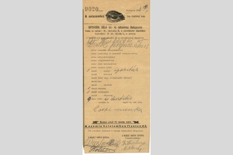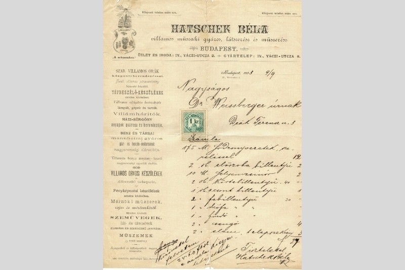 Induljon hát a visszatekintés: Hatschek Béla látszerész és műszerész számláival, melyek ugyan műszerészeti munkákról szólnak, de látszerész foglalkozását tekintve mégis érdekes lehet.
