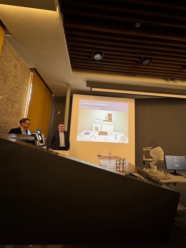 Az Essilor HungaryKft. csiszológépes előadása, melyet Németh István és Szilágyi Zsolt tartott, végül egy igazán inspiráló eszmecserévé formálódott. Miközbenláthatjuk, hogya technológiai fejlődés egyre látványosabban nyer teret, közös gondolkodás soráneljutottunkahhoz a felismeréshez, hogy az optikus szakma egyik legfontosabb értéke továbbra is a kézművesség. Ennek megőrzése azonban nem magától értetődő,tudatosan kell megszólítanunk a fiatalokat és olyan képzési lehetőségeket kell kínálnunk számukra, amelyek amellett, hogy fejlesztik a kézügyességet, valódi, gyakorlati tapasztalatot adnak. Ez a felismerés számomra különösen fontos volt, mert jól mutatja, hogy a jövő nem a hagyomány és az innováció választása között dől el, hanem abban, hogyan tudjuk a kettőt egymással összhangba hozni.
