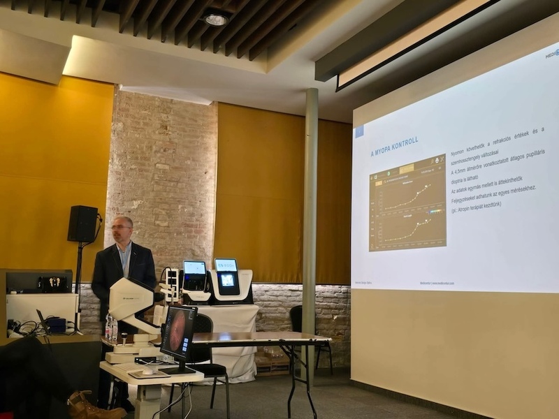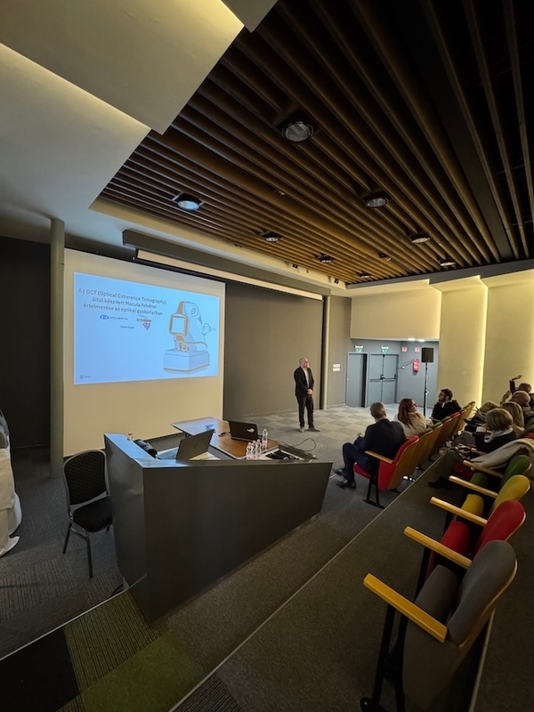Szabó Krisztián a Medicontur Orvostechnikai Zrt. és a Non Plus Ultra Látásközpont képviseletében az Optomed Lumo funduskamerát és a Topcon MYAH optikai biométert mutatta be és előadása során a gyakorlati hasznukat emelte ki, szemléltetve, hogyan könnyítik, pontosítják a mindennapi vizsgálatokat. A hallgatói élményt itt is egy olyan előadói hozzáállás erősítette, amely példákkal és esettanulmányokkal segítette a megértést, így a résztvevő az eszközök működését és azok gyakorlati alkalmazásának közvetlen előnyeit is megismerhették.